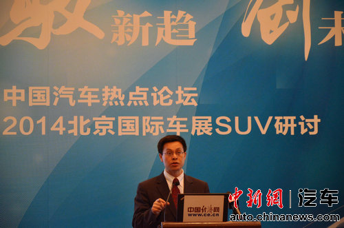 中新网4月19日电 昨天,由经济日报、中国贸促会汽车行业委员会主办、中国经济网承办的“中国汽车热点论坛——2014北京国际车展SUV研讨”在北京正式举行。在研讨中,来自行业、企业的专家与全国近百家主流媒体一起,就中国SUV市场现状与发展趋势,中美SUV市场对比以及豪华SUV市场营销经典案例等,进行了深入探究与分享。