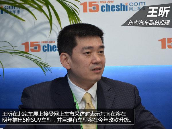 东南汽车副总经理王昕先生在北京车展期间接受网上车市专访表示,明年将推出一款五座SUV车型,并且东南V6 Cross也将在今年第四季度上市。而现在在售的车型V3,V5,V6整个产品系列也将全面升级,合资品牌这边,君阁,风迪思,神也有升级。而对于此次车展上展出的R7概念车,王昕没有透露出太多信息,但从这款车上我们也能看到未来东南7座大型SUV的雏形,并且王昕也表示,由于现在城市限购越来越常规化,7座SUV的功能性能够满足更多家庭的需求,所以东南会赋予它更多功能性。