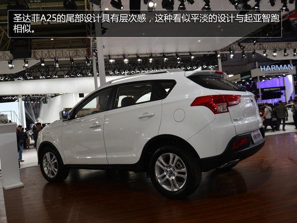A25定位高于圣达菲低于宝利格。在整车结构设计上,主要参考了现代ix35,外观造型在突出华泰特色的同时,部分设计元素借鉴了起亚智跑。 外观方面,圣达菲A25采用了其品牌家族式最新的盾形蜂窝状进气格栅设计,前大灯组内融入了“L”形LED日间行车灯。此外尾部方面,新车采用了独特造型的环抱式LED灯组设计。
