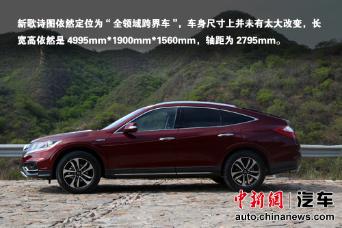 新歌诗图依然定位为“全领域跨界车”,车身尺寸上并未有太大改变,长宽高依然是4995mm*1900mm*1560mm,轴距为2795mm。歌诗图最低离地间隙达到150mm,比同品牌下的CR-V还要高出不少。车外观提供宝石红、奥福特黑、珍珠白、太空银四色可选。