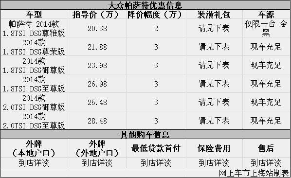 参与互动(0)日前网上车市上海站从上海怡通汽车服务有限公司,2014年5月9日-2014年5月11日目前店内帕萨特现车充足,详情请见下表: