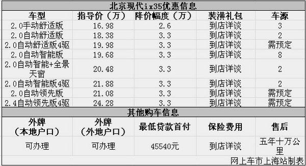 上海:北京现代ix35让利3.3万元 部分车源充足