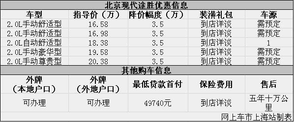 上海:现代途胜优惠让利3.5万元 外牌均可办理