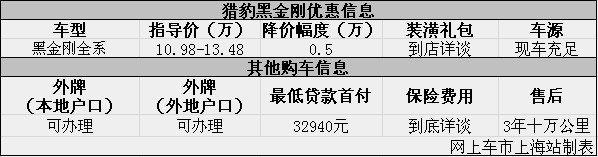 上海:猎豹黑金刚现优惠让利0.5万元 现车充足