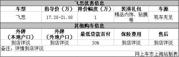 参与互动(0)日前网上车市上海站从上海现代4s店了解到,目前该店飞思车型优惠出售,详情请见下表: