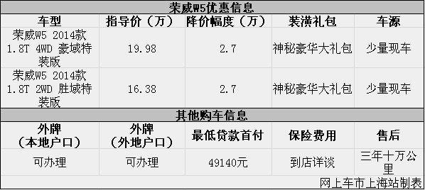 上海:荣威W5现优惠让利2.7万元 购车少量现车