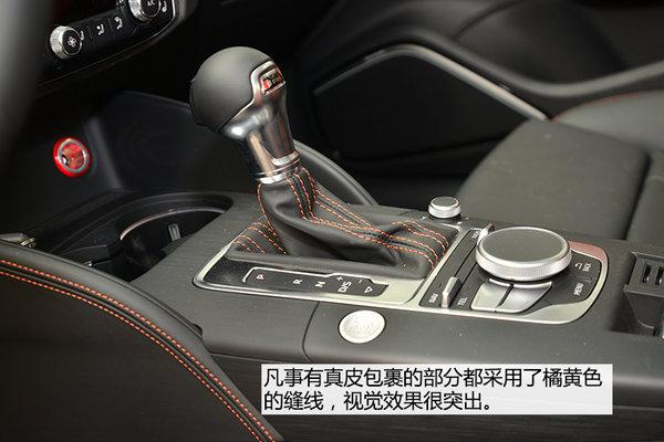 在结构上,三厢版和两厢版的A3内饰完全相同,但是颜色配置上却不相同。两厢版的奥迪A3内饰采用了黑色和橙色搭配,真皮包裹的部位都采用了橙色缝线,包括座椅和车门都采用了这两种颜色搭配,这也是为了突出两厢版车型的运动特性。