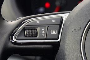 方向盘是驾驶者在行驶过程中交流最为频繁的组件,尺寸、握感都将直接影响到驾驶感,在驾驶了全新A3两日后,它的表现令我满意,表面的皮质十分细腻,两侧的快捷键触手可及,并集成了换挡拨片。熄火状态下位于6点钟的指针已成为奥迪的风格,燃油表与水温表分别被集成到转速表与时速表当中,中央3.5寸信息屏包含数字时速、车外温度、油耗与续航等内容的显示,购买高配车型的话,还会将ACC自适应巡航的信息整合在内。