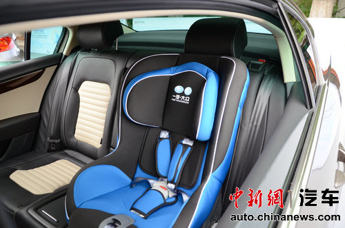 安装在一汽-大众迈腾后排的儿童安全座椅