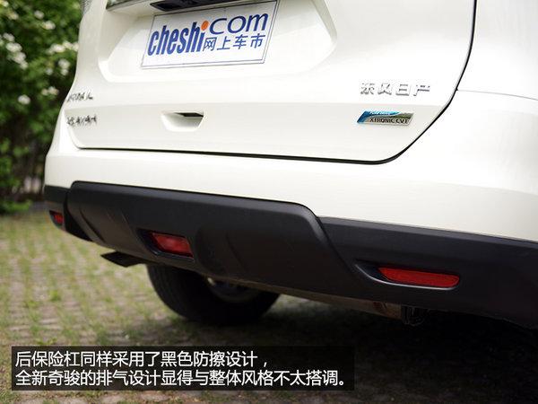 相比前部锋利的设计线条,尾部的整体设计手法更有SUV车型的浑厚感。尖锐的尾灯设计风格并没有对尾部整体造型造成影响,层次感分明的尾部布局,也让我们看到了一些硬朗感。唯一美中不足的,就是全新奇骏的排气设计风格,显得有些融不入整体。
