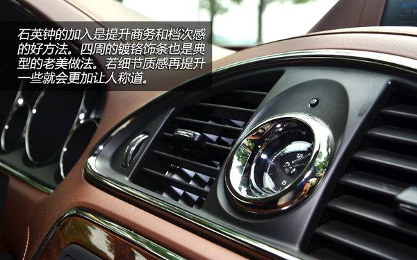 内饰的变化不大,和老款相比,也没有多少质的飞跃。但别克善于通过细节的点缀来增加豪华感,这一点在昂科雷身上得以应验。通过真皮包裹和木纹饰条的运用,营造了非常显档次的商务豪华感。但细节的处理依旧不够有耐心,边角和缝隙都需要进一步完善和打磨。大而无当、大大咧咧可不是国人的审美诉求。