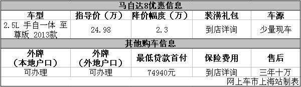 上海:马自达8至尊版优惠让利2.3万 少量现车