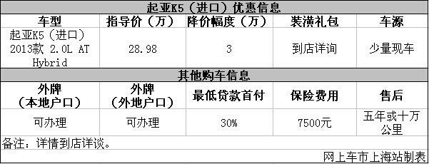 上海:2013款进口起亚K5现优惠3万元 少量现车