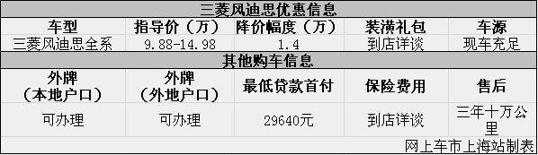 上海:风迪思现优惠让利1.4万元 购车现车充足