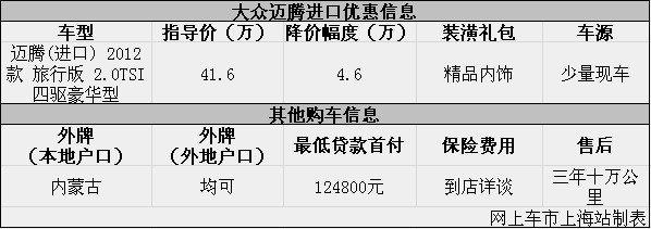 上海:进口大众迈腾现优惠4.6万元 现车少