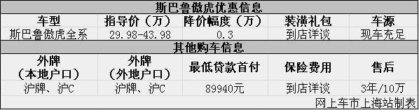 上海:斯巴鲁傲虎优惠0.3万元 购车现车充足