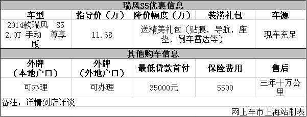 上海:江淮瑞风S5车型优惠活动送精美装潢礼包