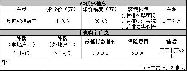 上海:奥迪A8L豪华版特装车优惠26.02万元