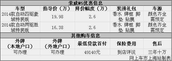 参与互动(0)日前网上车市上海站从上海瑞孚4s店了解到,目前该店荣威W5优惠出售,详情请见下表: