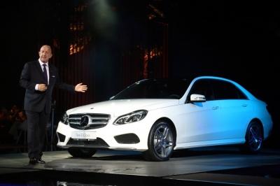 北京奔驰销售服务有限公司总裁兼首席执行官倪恺在讲解奔驰新E级车。