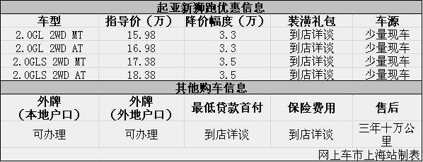 上海:起亚新狮跑优惠让利3.3万起 购车现车少