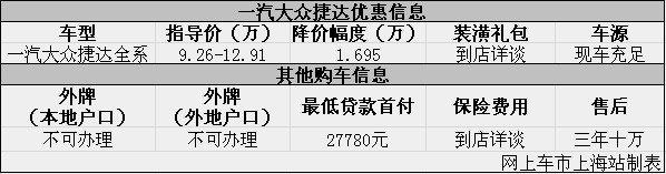 上海:一汽大众捷达现优惠让利近1.7万 有现车