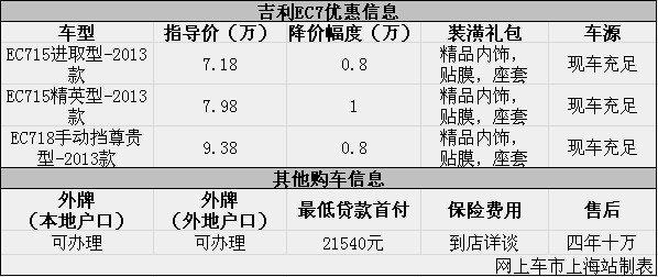 参与互动(0)日前网上车市上海站从上海晋熙4s店了解到,目前该店帝豪EC7优惠出售,详情请见下表: