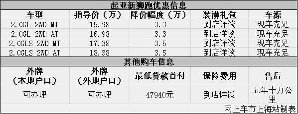 上海:起亚狮跑现优惠3.3万元起 外牌可办理
