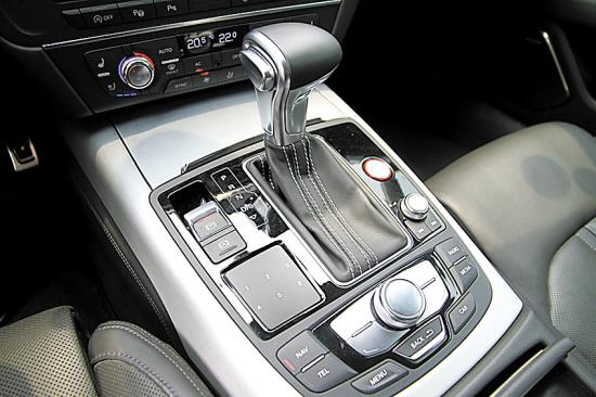S7搭载的是7前速S-Tronic双离合变速箱,当然这台双离合变速箱和大众给民用车匹配的7速DSG没有关系,不用怀疑它的工作稳定性。换挡模式方面,D挡、S挡、换挡拨片都一一齐全。S7在普通模式D挡之下,2000多转的时候都几乎悄无声息,车尾也没有任何蠢蠢欲动的排气声,显然和传统讲究豪华舒适的奥迪车型相近。