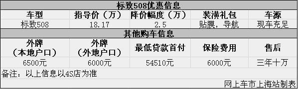 参与互动(0)日前网上车市上海站从上海陆狮4s店了解到,目前该店标致508优惠出售,详情请见下表: