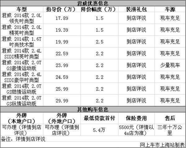 参与互动(0)日前网上车市上海站从上海瑞锦别克4s店了解到,目前该店别克君威优惠出售,具体信息见下表: