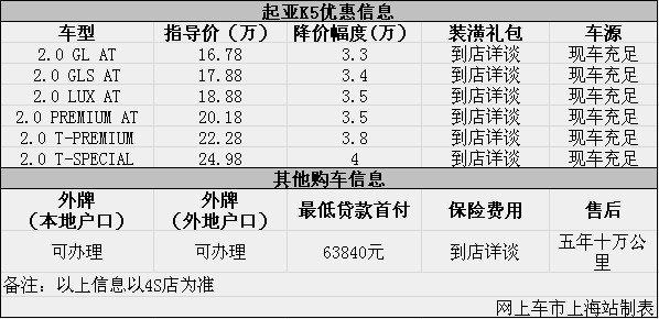 上海:起亚K5现优惠让利3.3万元起 外牌可办理