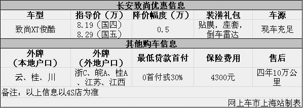 上海:长安致尚现优惠0.5万元 送装潢大礼包