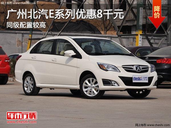近日,根据北京汽车品牌广州地区授权经销商处获悉,现阶段下订购买2013款北汽E系列全系任一款车型的客户,最高可享受8千元的现金优惠,折合最低裸车价为4.68万元。到店可以了解更多优惠内容!店内库存现车数量充足,颜色可选!感兴趣的朋友不妨到店详询!具体车型以及价格如下: