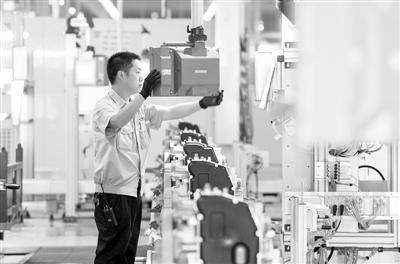 长安福特投资3.5亿美元的变速箱工厂日前在重庆正式投产,这也是其在亚太地区首家变速箱厂。 图为6月18日,技术工人在位于重庆的福特品牌变速箱生产线上工作。新华社发