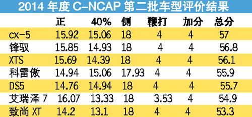 7月1日,中国汽车技术研究中心在位于天津的豪华新办公大楼内发布了2014年度C-NCAP第二批车型评价结果,本次发布的结果共涉及7个车型。据悉,本评价车型均由C-NCAP管理中心从各车型专卖店直接购买,购车费用支出共计423万元。包括艾瑞泽71.6L手动致享版、MAZDA CX-5 2.0L自动舒适型、凯迪拉克XTS 2.0T舒适型、科雷傲2014款2.5L两驱舒适版、致尚XT 1.6AT致酷型、锋驭1.6L自动精英型、DS5 THP160豪华版。让业界哗然的是,第二批车型评价结果全五星,而今年第一批测试结果11款车中有10款也全部五星!C-NCAP的评价结果让参评车企“喜大普奔”。