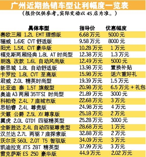 令车商稍显安慰的是:此时仍愿意顶着大太阳来看车的客户,基本是有急切买车需求,成交率高。由于近期上市新车较多,竞争激烈导致大多新车价只能降价应对,尤其是一些不太紧俏的车型,刺激了不少消费者前来“抄底”特价车,如雷克萨斯旗下多款车型八折起。随着巴西世界杯即将步入尾声,车商都在把握时机做最后一轮的“世界杯限量定制车型”促销活动,如起亚、现代都有专属的广州特供“世界杯版”车型,增配不加价,性价比不错,配合这些车型的是优惠的置换和车贷方案。有经销商向记者表示:广州今年六七月份的新车优惠几乎是有史以来最给力的一次。