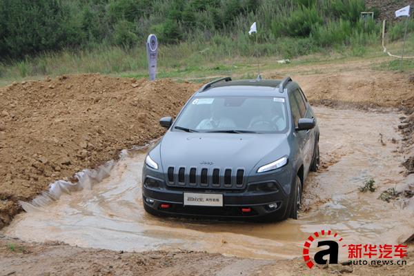 深水池主要测试SUV的涉水性。经过Jeep Trail Rated 四驱能力评级体系认证的 Jeep四驱车家族具备特殊的电路设计、车身密封工艺以及较高的发动机进气口高度,在穿越其他车辆望而却步的溪流和积水的时候有着巨大的优势。强悍的Jeep牧马人最大涉水深度为75cm,大切诺基和自由光也拥有超过50cm涉水深度。