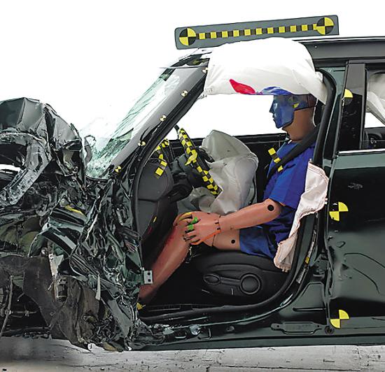 目前各个国家进行正面安全碰撞主要有两种,分别是100%正面重叠碰撞和40%正面重叠碰撞。不过,只有美国IIHS独家进行25%正面重叠碰撞,也就是所谓的小范围碰撞测试。因为该组织发现,每年的正面碰撞事故中仍然有大量的死亡数量,而造成死亡的原因大部分来自于小面积重叠碰撞。因此,IIHS从2012年开始新增了25%重叠面碰撞测试。25%正面重叠碰撞指测试车辆以40英里/小时(64公里/小时)的速度去撞击重叠面积只相当于车身宽度25%的固体物质。也就是说,就像一辆车撞向一棵大树之类的状况。由于碰撞面积大大减小,因此对车辆的安全性能要求也更高。25%正面重叠碰撞的成绩分为四个等级,分别是“good(优秀)、Acceptable(良好)、Marginal(及格)、Poor(差)”四个等级。(记者 郭尧)