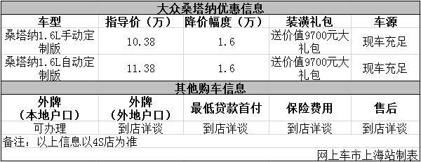 上海:桑塔纳定制版最高优惠1.6万元