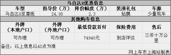 上海:马自达8现优惠2.3万元 购车少量现车