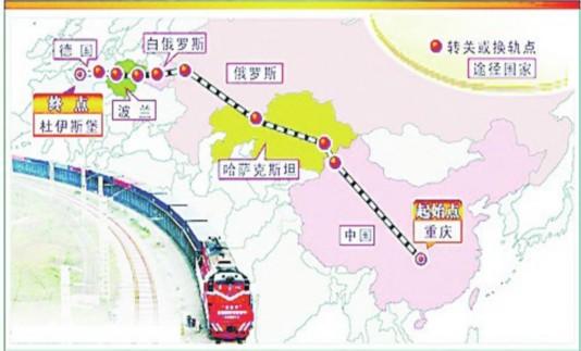 据介绍,该趟回程班列全程运行时间预计16天左右。运行线路从德国杜伊斯堡,经波兰、白俄罗斯、俄罗斯、哈萨克斯坦到中国阿拉山口最后到重庆团结村。