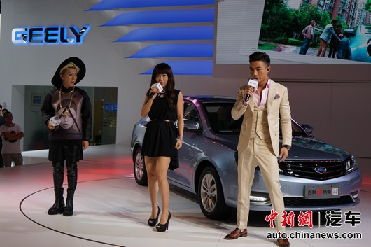 中新网 8月29日电 今日,第十七届成都车展在成都世纪城新国际会展中心开幕。车展期间,3名“中国好声音”学员胡梦周、赵露和梁君诺亮相吉利汽车展台,为吉利新帝豪车型在西南地区市场上市助威。