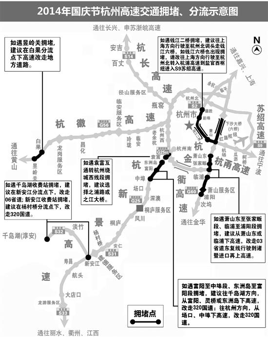 此外,杭金衢高速萧山服务区、杭新景高速桐庐服务区在节日期间,受大流量影响可能会造成饱和。特别是杭新景高速往千岛湖方向的桐庐服务区,在免费小长假期间都会出现排队拥堵现象