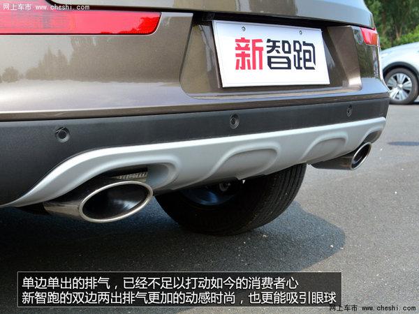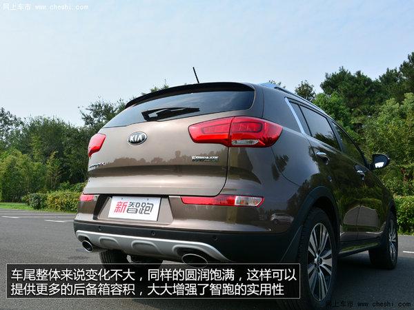 来到车尾,整体的造型保留了原有的圆润饱满造型,虽然尾灯的外形没有改变,但其中融入了LED光源,不仅起到了良好的警示作用,还为智跑增添了更多的时尚元素。并且摒弃了单边单出的排气,取而代之的双边两出排气,也使尾部更加迷人。
