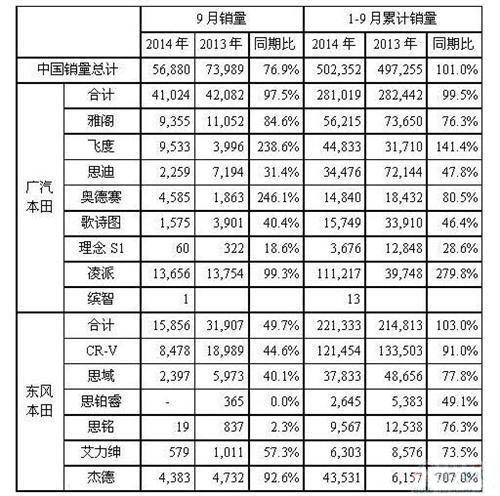 本田今年设定的产销目标为90万辆,因为2013年本田在华销量一度达到756,882辆,同比2012年增长26.4%,为此在2014年设定将近20%的增长预期,但从前三个季度的完成情况来看,全年目标落空基成定局。