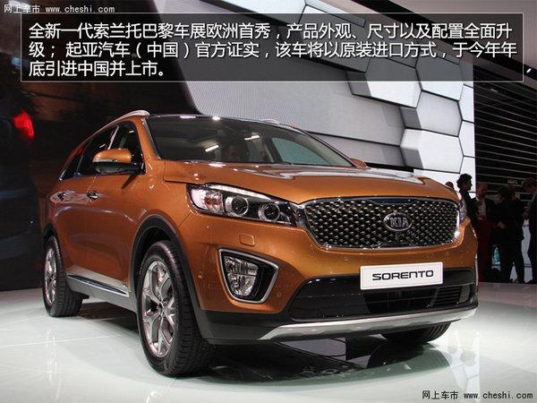 索兰托的换代车型有点姗姗来迟,它的竞争对手中,汉兰达、全新胜达都已换代。尽管新一代车型来得有点晚,不过新车还是有不少改进。全新一代索兰托巴黎车展欧洲首秀,产品外观、尺寸以及配置全面升级。起亚汽车(中国)官方证实,该车将以原装进口方式,于今年年底引进中国并上市。