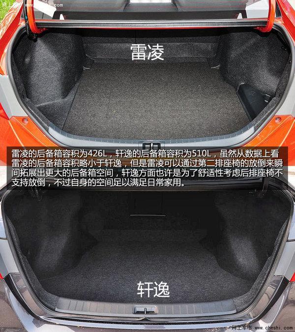 雷凌的后备箱容积为426L,轩逸的后备箱容积为510L,虽然从数据上看雷凌的后备箱容积略小于轩逸,但是雷凌可以通过第二排座椅的放倒来瞬间拓展出更大的后备箱空间,轩逸方面也许是为了舒适性考虑后排座椅不支持放倒,不过自身的空间足以满足日常家用。