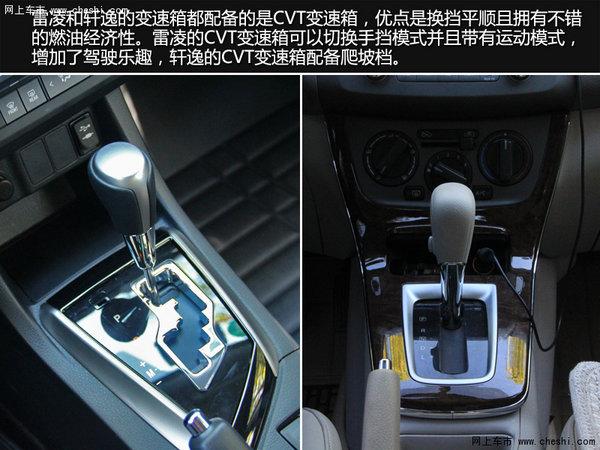 雷凌和轩逸搭载的都是自然吸气发动机,在排量和调校上雷凌要高一些。雷凌和轩逸的变速箱都配备的是CVT变速箱,优点是换挡平顺且拥有不错的燃油经济性。雷凌的CVT变速箱可以切换手挡模式并且带有运动模式,增加了驾驶乐趣,轩逸的CVT变速箱配备爬坡档。