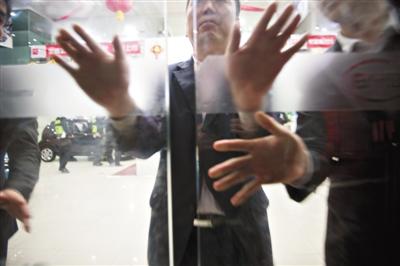 昨晚7时,深圳香蜜湖汽车交易市场一汽车4S店,员工在政府工作人员的要求下关上店门,只让出不让进。图/CFP